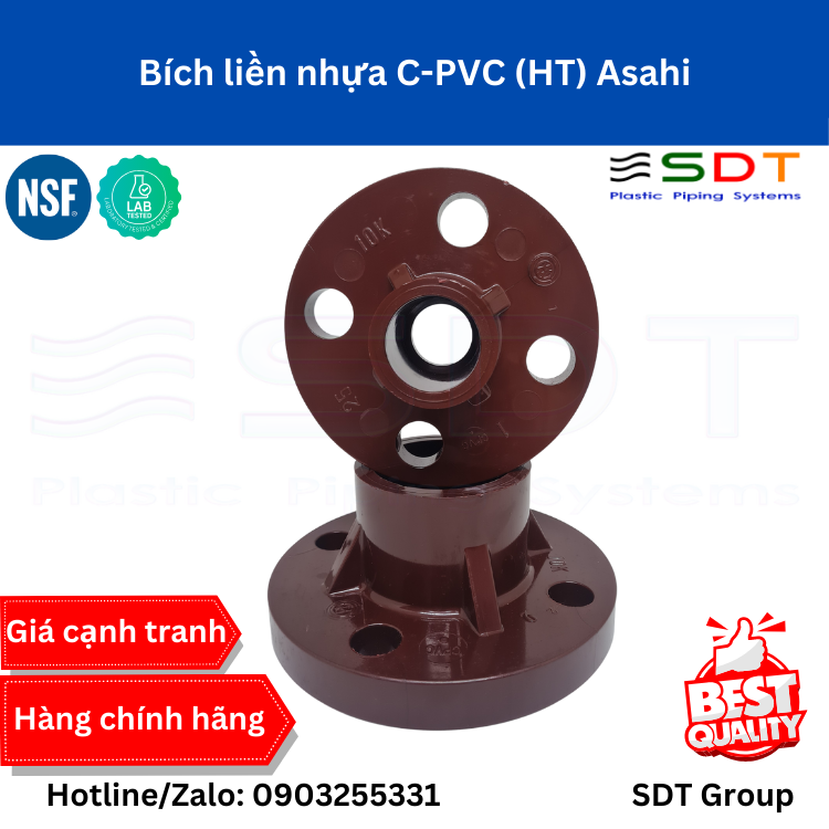 Bích liền (HT-PVC) là phụ kiện ống nhựa cao cấp, chuyên dùng cho hệ thống dẫn nước, hóa chất, xử lý nước thải trong môi trường công nghiệp chuyên nghiệp. Sản phẩm được sản xuất theo tiêu chuẩn JIS K6743 với chất lượng vượt trội, độ bền cao và khả năng chịu áp suất tối ưu lên tới 0.75 MPa.