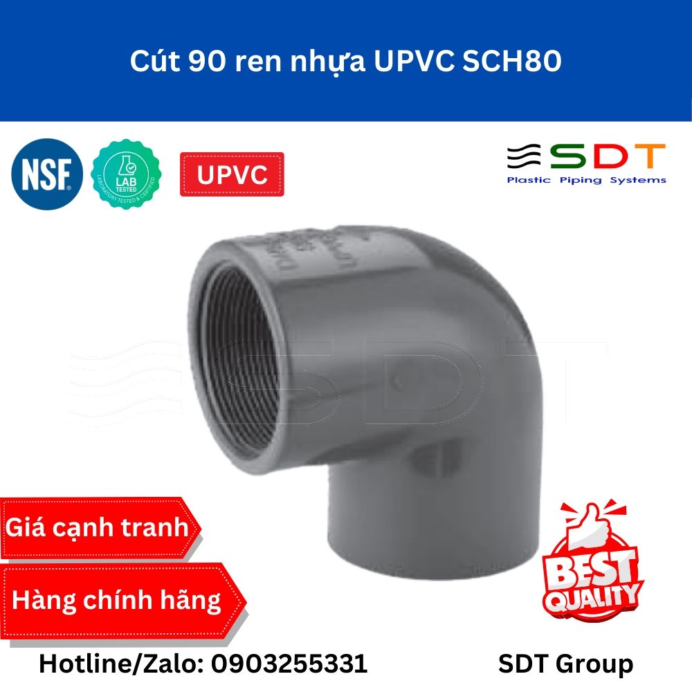 Cút 90 ren trong nhựa UPVC SCH80:Trọng lượng nhẹ, linh động cao, cứng và bền