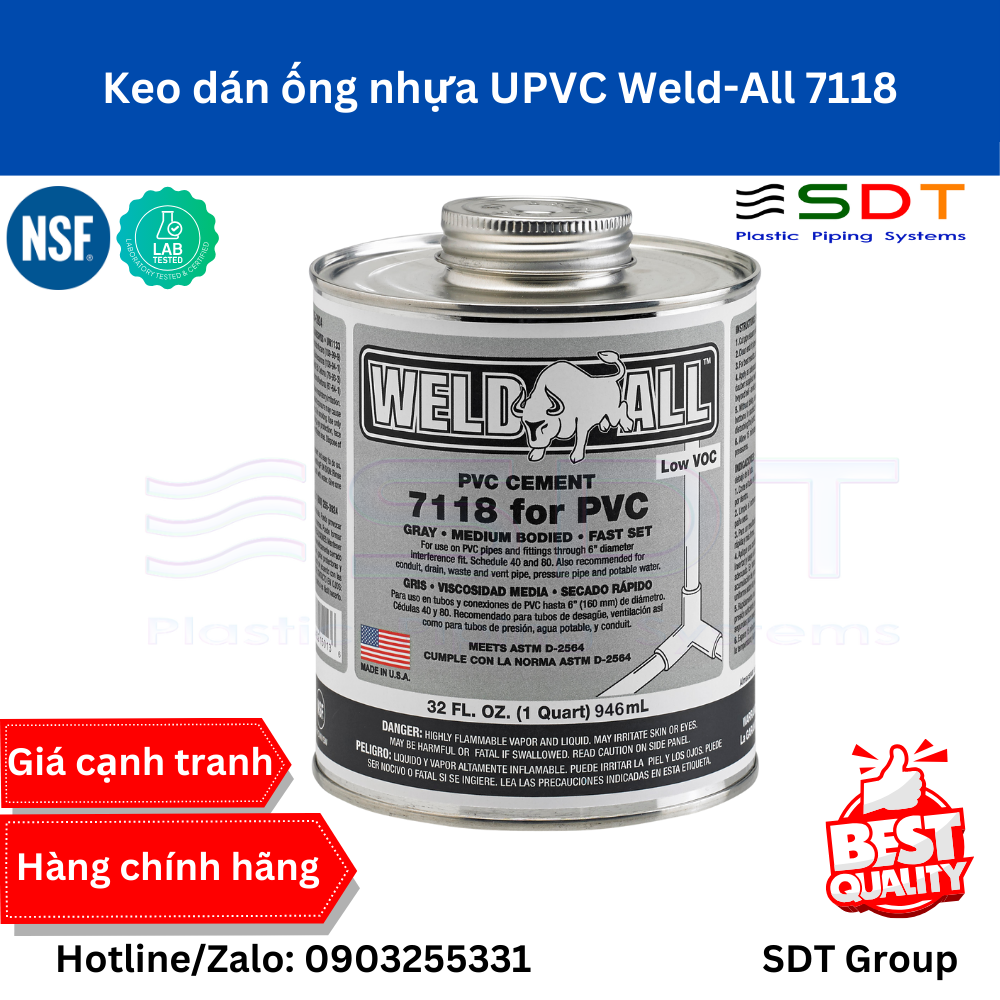 Keo dán ống nhựa PVC Weld-All 7118 loại 946ml
