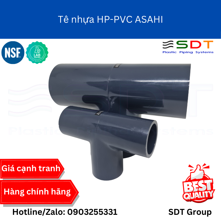 Tê (HP-PVC) là phụ kiện ống nhựa cao cấp, chuyên dùng cho hệ thống dẫn nước, hóa chất, xử lý nước thải trong môi trường công nghiệp chuyên nghiệp. Sản phẩm được sản xuất theo tiêu chuẩn JIS K6743 với chất lượng vượt trội, độ bền cao và khả năng chịu áp suất tối ưu lên tới 0.75 MPa.